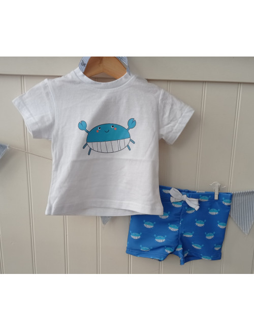 Conjunto Cangrejo, camiseta 100% algodon + bañador