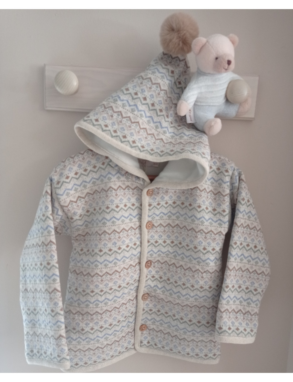 Chaqueta estampada con capucha y pompón